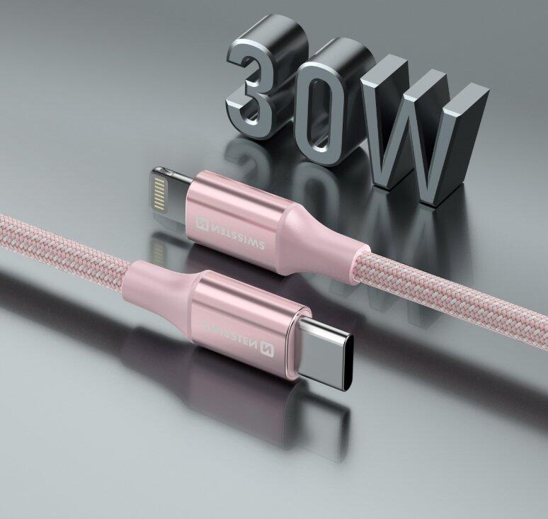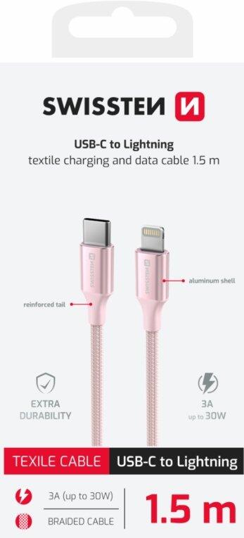 Swissten Textile II USB-C - Lightning Datu un Uzlādes Vads 1.5m