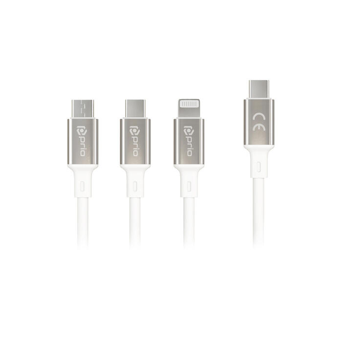 prio 3 in 1 Micro USB & USB C & Lightning uz USB C kabelis 3A 1,2 m balts