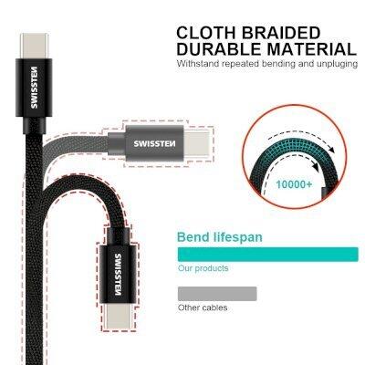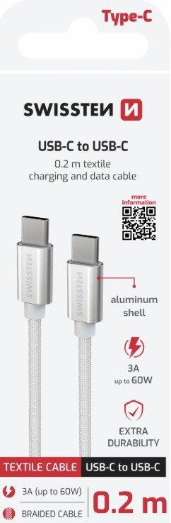 Swissten Textile Universāls Quick Charge 3.1 USB-C / USB-C Datu un Uzlādes Kabelis 0.2m sudraba