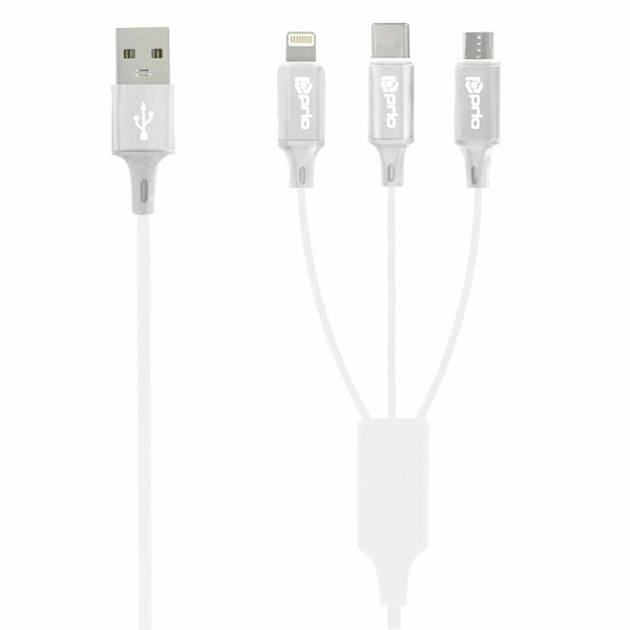 prio 3in1 Micro USB & USB C & Lightning uz USB A kabelis 3A 2 m balts
