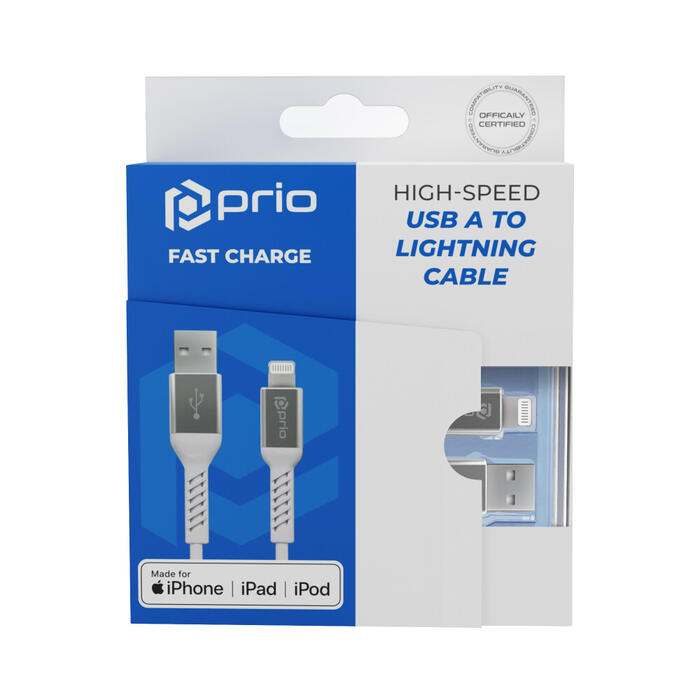 prio uzlādes un sinhronizācijas kabelis no USB A uz Lightning MFi sertificēts 2 m balts