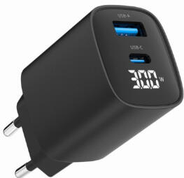 Lādētājs Gembird USB Type-C + USB Type-A LCD Black