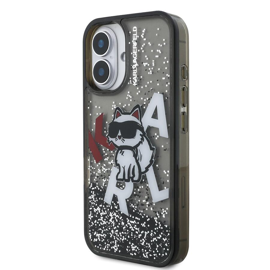 Karl Lagerfeld Liquid Glitter Scattered Choupette Case Aizsargapvalks priekš Apple iPhone 16