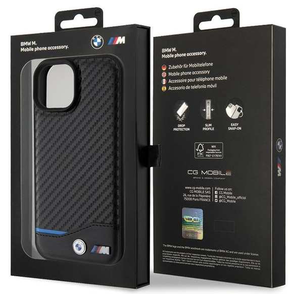 BMW PU Carbon Case Aizmugurējais Apvalks Priekš Apple iPhone 15