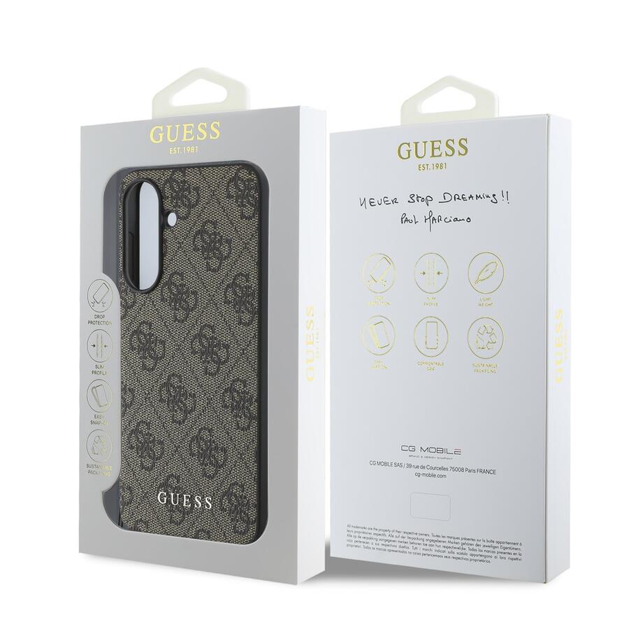 Augstākās kvalitātes Guess 4G Charm aizmugurējā vāciņā ir elegants, raksturīgs 4G raksts, kas papildināts ar zelta GUESS logotipu.