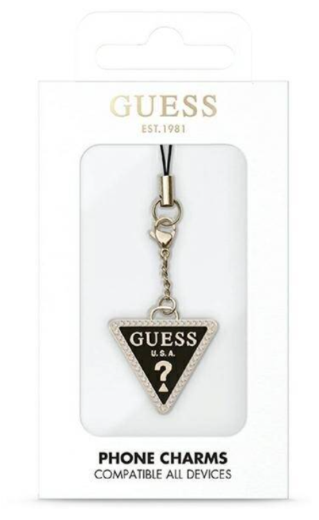 Trīsstūra formas šarmu rotā klasiskais Guess logotips, uzsverot Jūsu telefona prestižu un apliecinot produkta augstāko kvalitāti un autentiskumu. Turklāt šarma ārējā daļa ir dekorēta ar vairākiem kristāliem, kas pievērš uzmanību šarmam un piešķir tālrunim greznu izskatu.