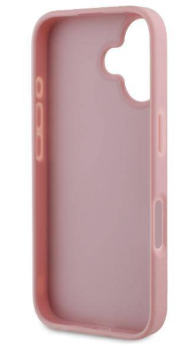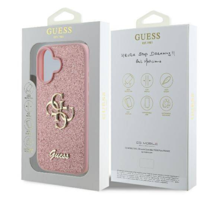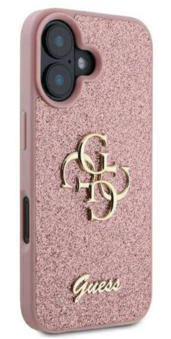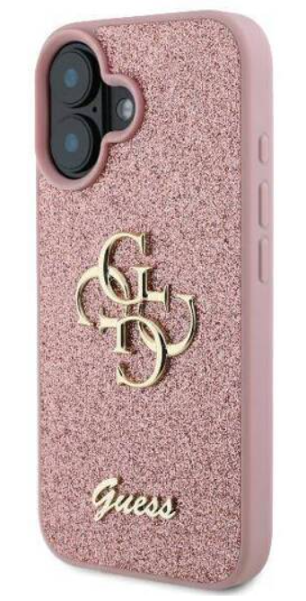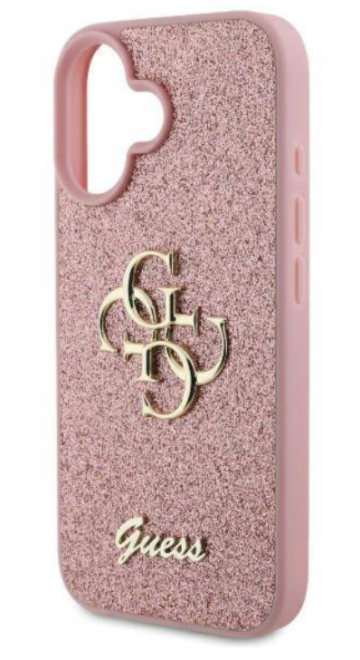 Guess iPhone 16 Case Fixed Glitter 4G Pink. Guess PU Fixed Glitter 4G metāla logotipa aizmugurējais vāciņš ir ideāls aksesuārs jūsu tālrunim un jūsu apģērbam, apvienojot funkcionalitāti un stilu vienā.
