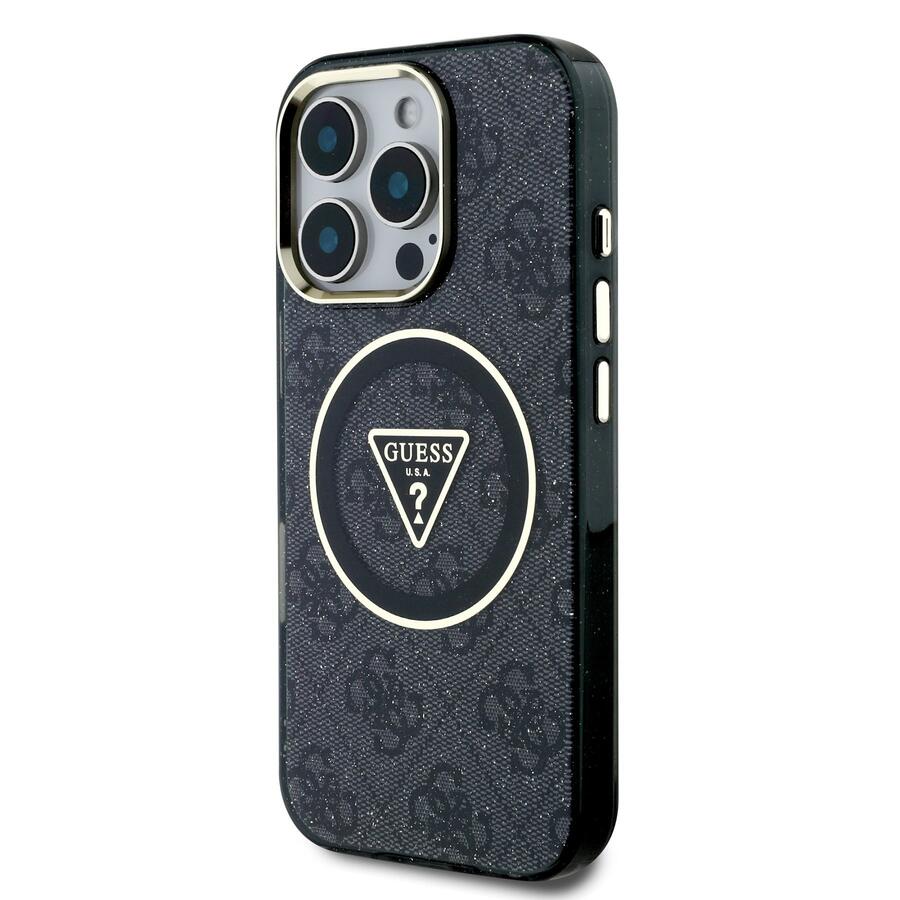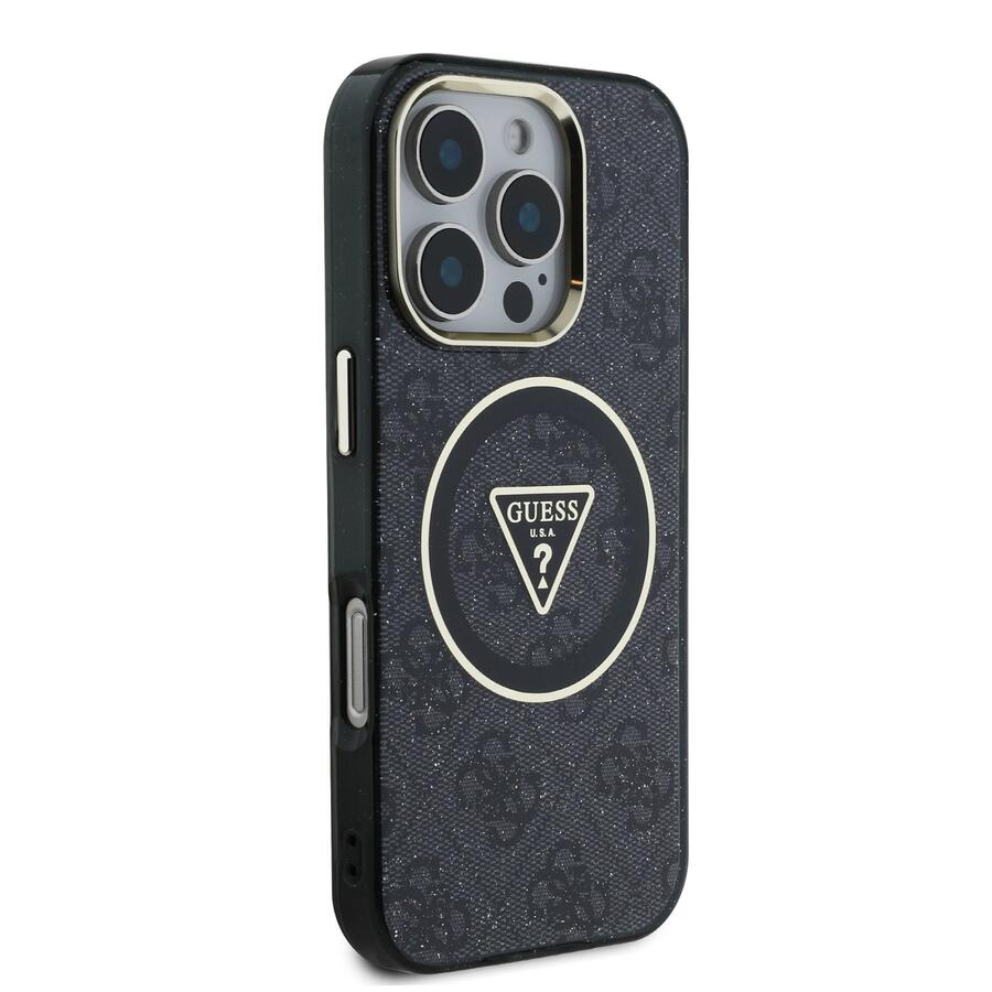 Guess IML 4G Glitter and Triangle Logo MagSafe Case Aizsargapvalks priekš Apple iPhone 16 Pro Max