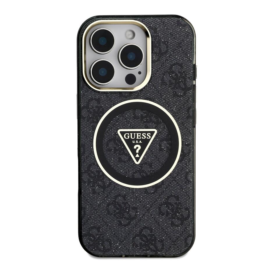 Guess IML 4G Glitter and Triangle Logo MagSafe aizmugurējais vāciņš jūsu tālrunim ir lielisks aksesuārs visiem stila un praktiskuma cienītājiem.