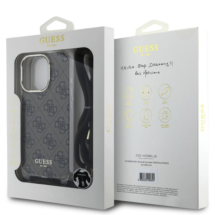 Guess IML 4G Printed Crossbody Strap Case Aizsargapvalks priekš iPhone 16 Pro / brūns