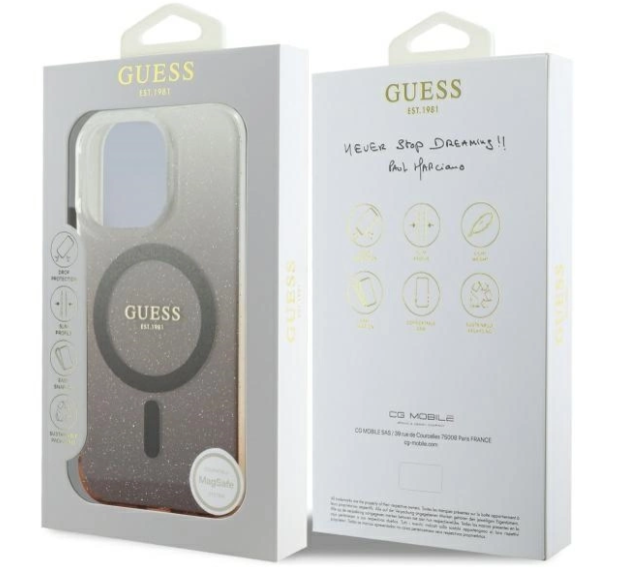 Uzkrītošs mirdzuma gradients: Guess korpusā ir mirdzošs mirdzuma gradients, kas jūsu iPhone piešķir izsmalcinātību un greznību, radot uzkrītošu aksesuāru.