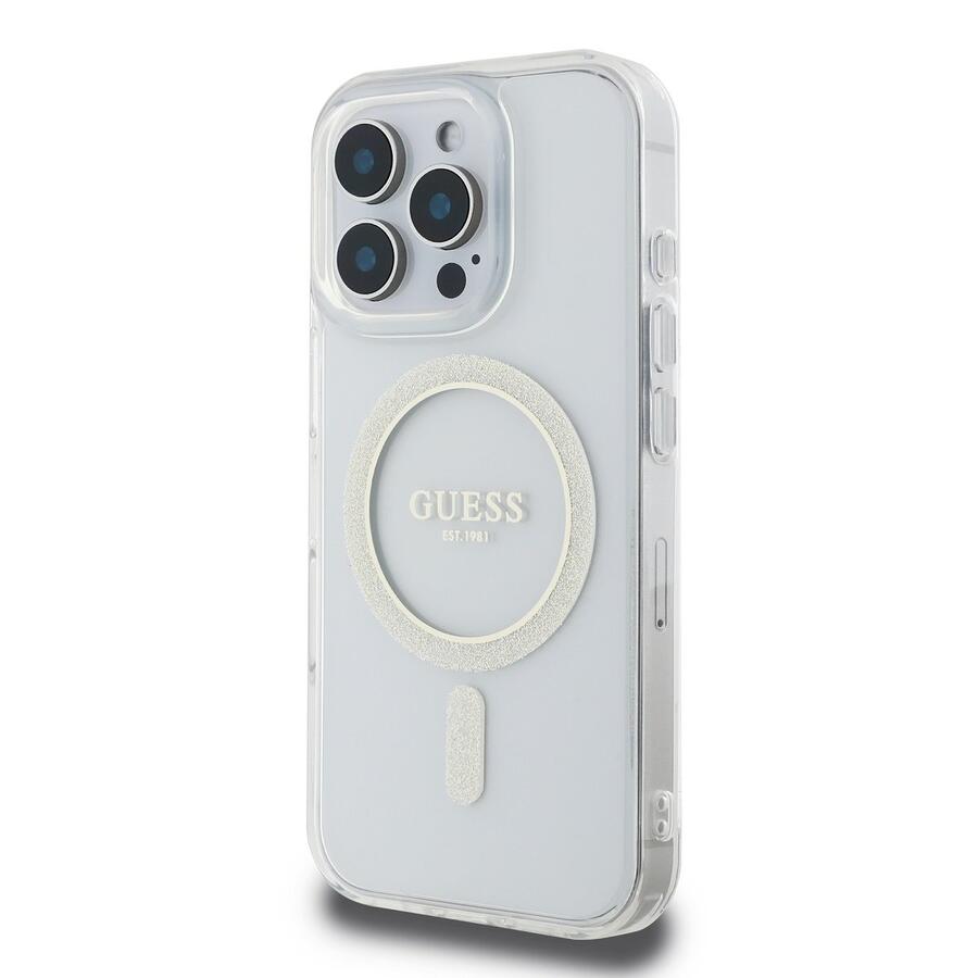 Guess IML Glitter Ring MagSafe Case Aizsargapvalks priekš iPhone 16 Pro Max / caurspīdīgs