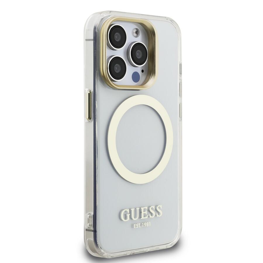Guess IML zelta kontūras statīva kameras rāmja MagSafe aizmugurējais vāciņš jūsu tālrunim ir lielisks aksesuārs visiem stila un praktiskuma cienītājiem.