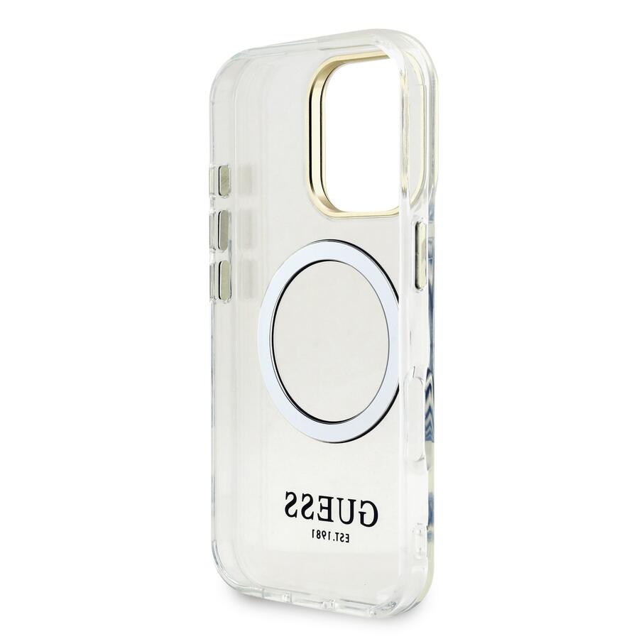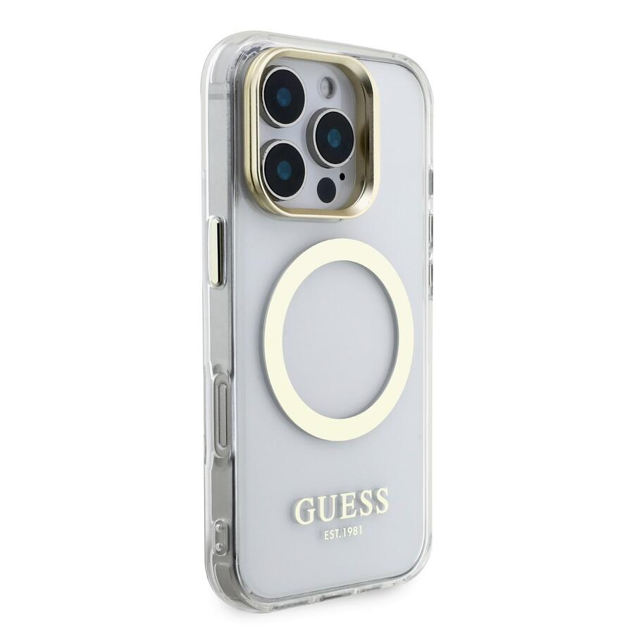 Guess IML zelta kontūras statīva kameras rāmja MagSafe aizmugurējais vāciņš jūsu tālrunim ir lielisks aksesuārs visiem stila un praktiskuma cienītājiem.