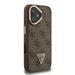 Augstākās kvalitātes Guess PU 4G Strass trīsstūra logotipa statīva kameras rāmja aizmugurējam vāciņam ir elegants, raksturīgs 4G raksts, kas papildināts ar GUESS trīsstūra logotipu. Vāciņš ir izgatavots no elastīga un izturīga PU materiāla ar PU ādas virsmas apstrādi un tādējādi piedāvā ne tikai lielisku tālruņa aizsardzību, bet arī komfortu lietošanas laikā. Šī apdare nodrošina stingru satvērienu, kas samazina risku, ka tālrunis izslīd no rokas. Pateicoties precīzajai formai, tas lieliski iederas tālrunī un ļauj ērti piekļūt visām pogām un savienotājiem. Vāciņš ir praktiski veidots ar integrētu statīvu aizmugurē, kas darbojas arī kā aizmugures kameras aizsargrāmis. Pateicoties statīvam, jūs varat vienkārši nolikt tālruni uz galda un ērti skatīties filmas, video, skatīt fotoattēlus vai veikt videozvanus – tas viss notiek, neturot tālruni rokā. Šis futrālis atbalsta MagSafe tehnoloģiju, kas nozīmē, ka tas ir saderīgs ar bezvadu uzlādi un citiem MagSafe piederumiem. Šis pirmklasīgais vāciņš ir lielisks piedāvājums cilvēkiem, kuri novērtē ne tikai ekskluzīvu izskatu modē, bet arī augstu kvalitāti un funkcionalitāti. Tas ir būtisks aksesuārs ikvienam, kas meklē elegances un prestiža kombināciju.