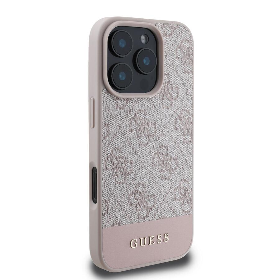 Guess PU 4G Stripe Case Aizsargapvalks priekš iPhone 16 Pro / rozā