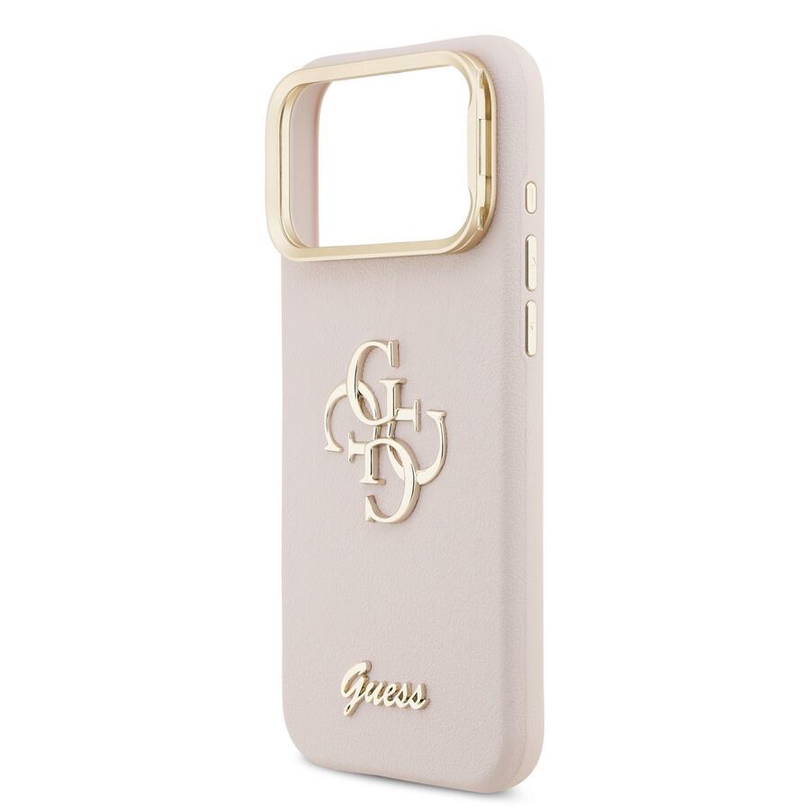 Guess PU Grained 4G Logo Stand Camera Frame Case Aizsargapvalks priekš iPhone 17 Pro Max / rozā