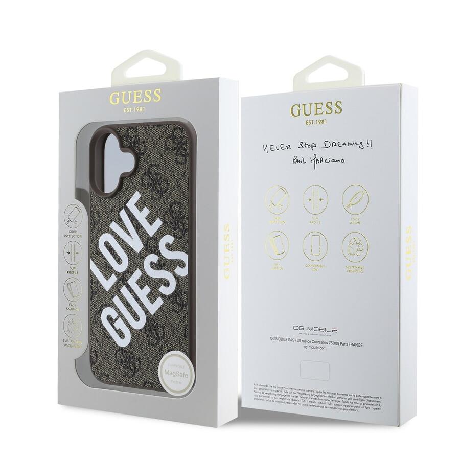 Guess PU Leather 4G Big Love Logo MagSafe Case Aizsargapvalks priekš iPhone 16 / brūns