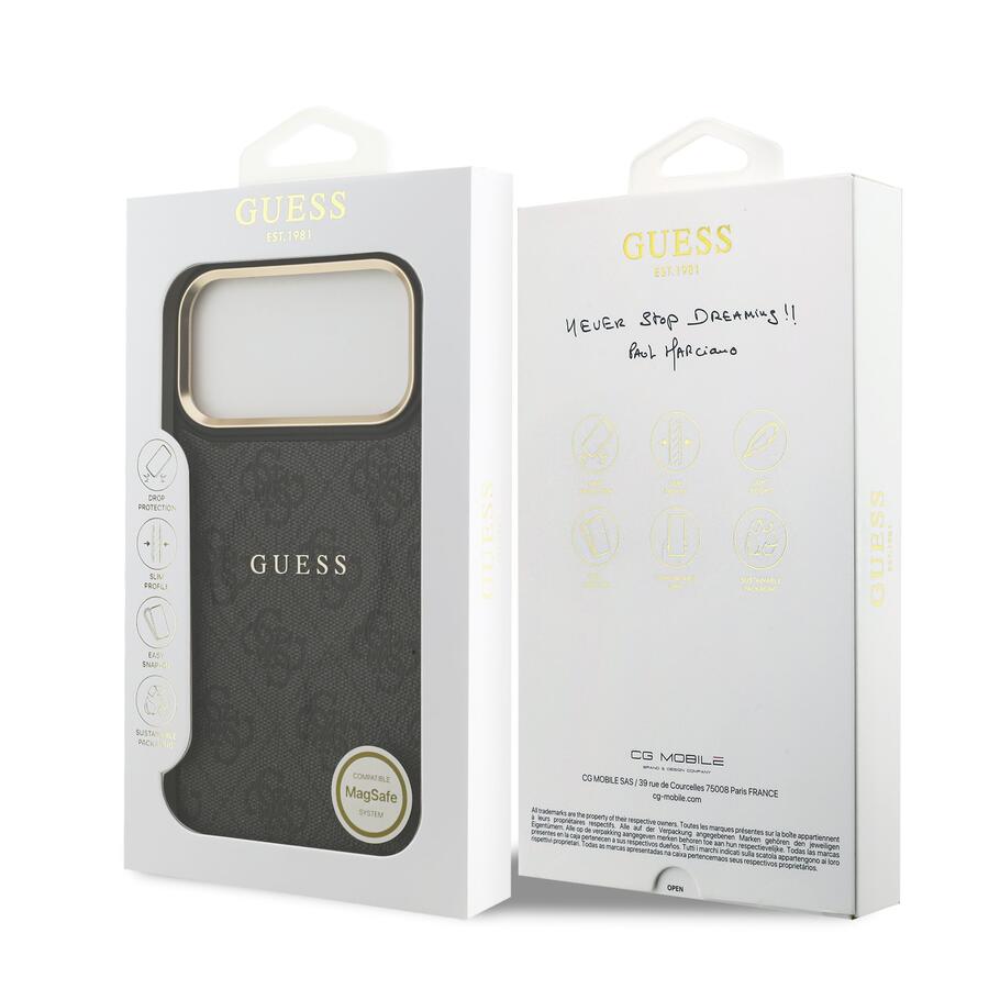 Guess PU ādas 4G MagSafe aizmugurējais vāciņš ir ideāls aksesuārs jūsu tālrunim un apģērbam, apvienojot funkcionalitāti un stilu.