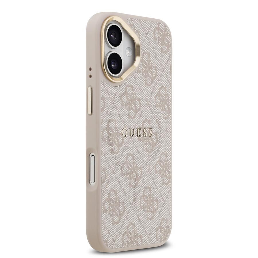 Guess PU Leather 4G Gold Frame MagSafe Case Aizsargapvalks priekš iPhone 17 / rozā