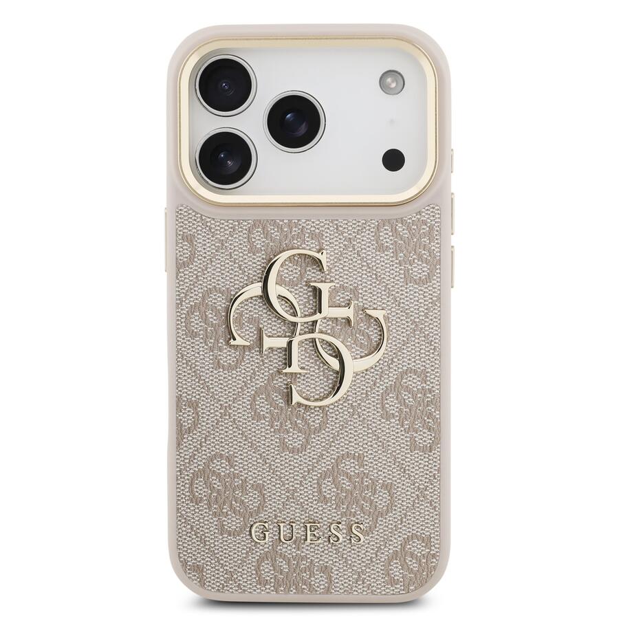 Guess PU Leather 4G Metal Logo Gold Frame Case Aizsargapvalks priekš iPhone 17 Pro / rozā