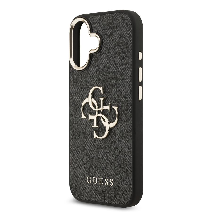 Guess PU Leather 4G Metal Logo Gold Frame Case Aizsargapvalks priekš iPhone 17 / melns