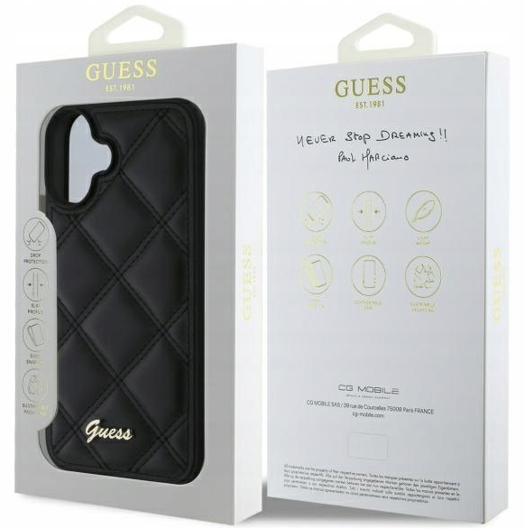 Stepēta virsma: izgatavots no izturīga materiāla ar stepētu rakstu, Guess korpuss piešķir jūsu ierīcei greznu izskatu un uzsver tās eleganto stilu.