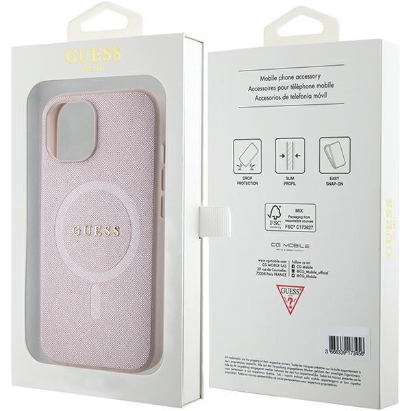 Guess Saffiano MagSafe Back Case Aizsargapvalks Priekš Apple iPhone 15 Plus