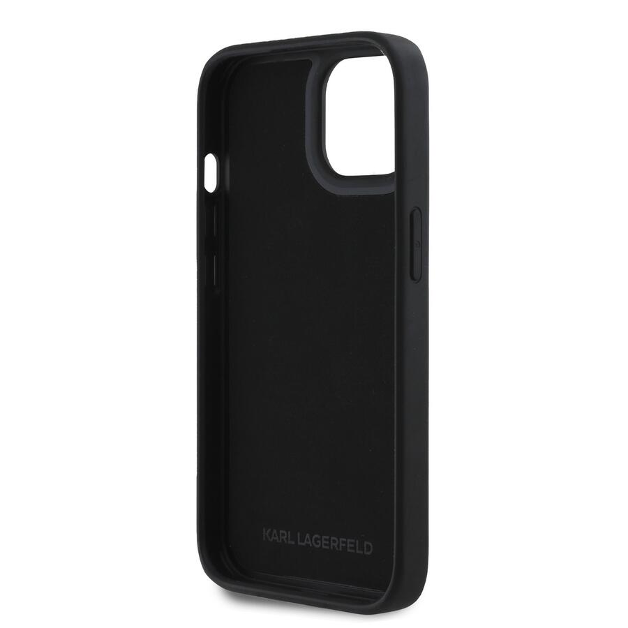 Karl Lagerfeld 3D Rubber Glitter Logo Case Aizsargapvalks priekš iPhone 15 / melns