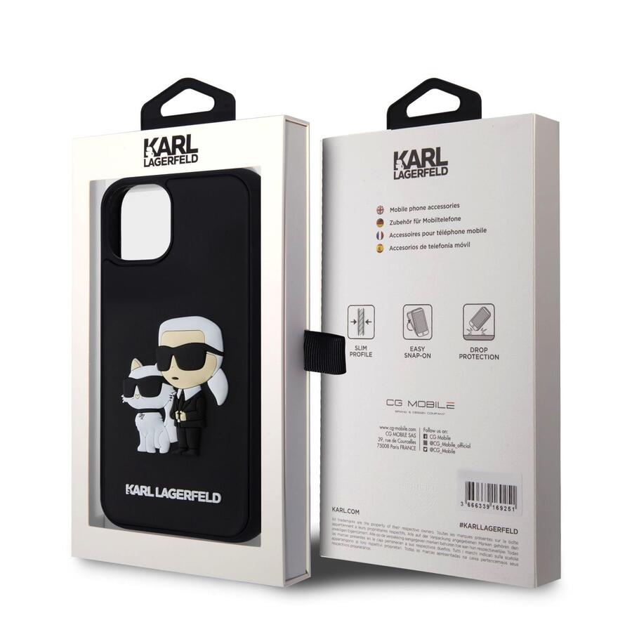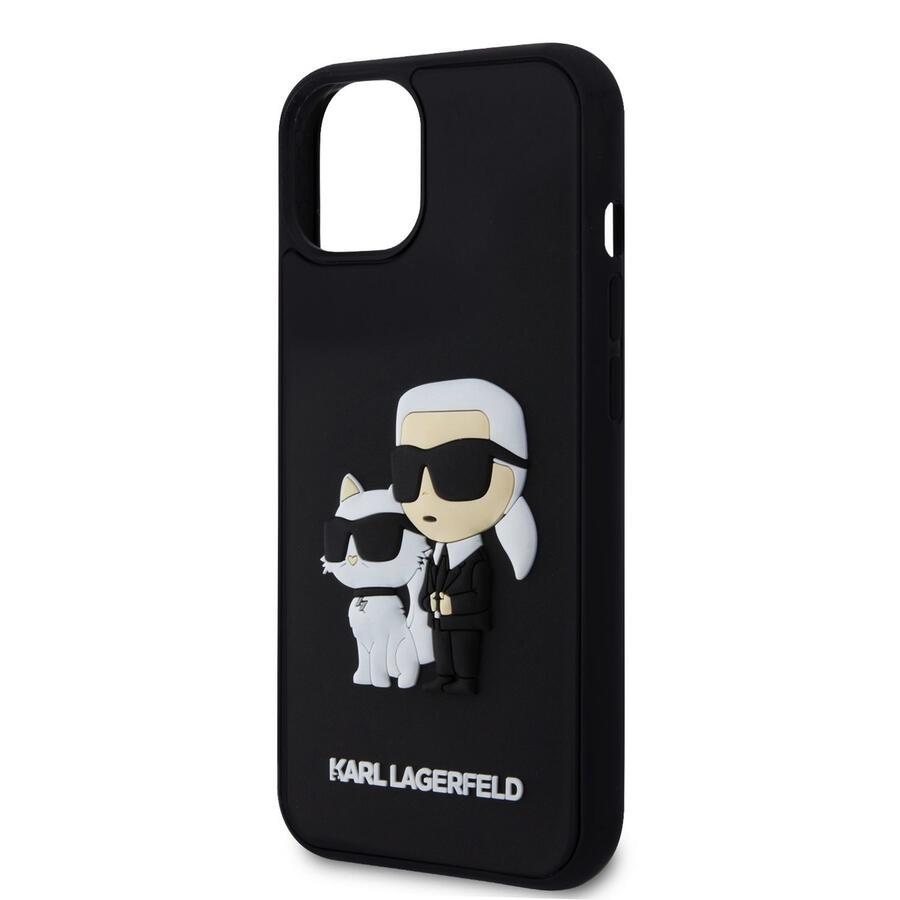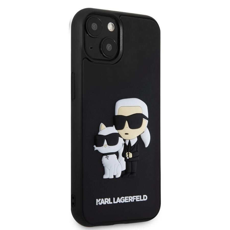 Karl Lagerfeld 3D Rubber Karl and Choupette Case Aizsargapvalks priekš iPhone 13 / melns