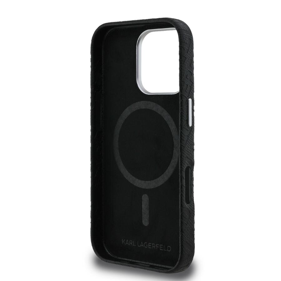 Karl Lagerfeld Grained PU Repeated Logo MagSafe Case Aizsargapvalks priekš Apple iPhone 16 Pro Max