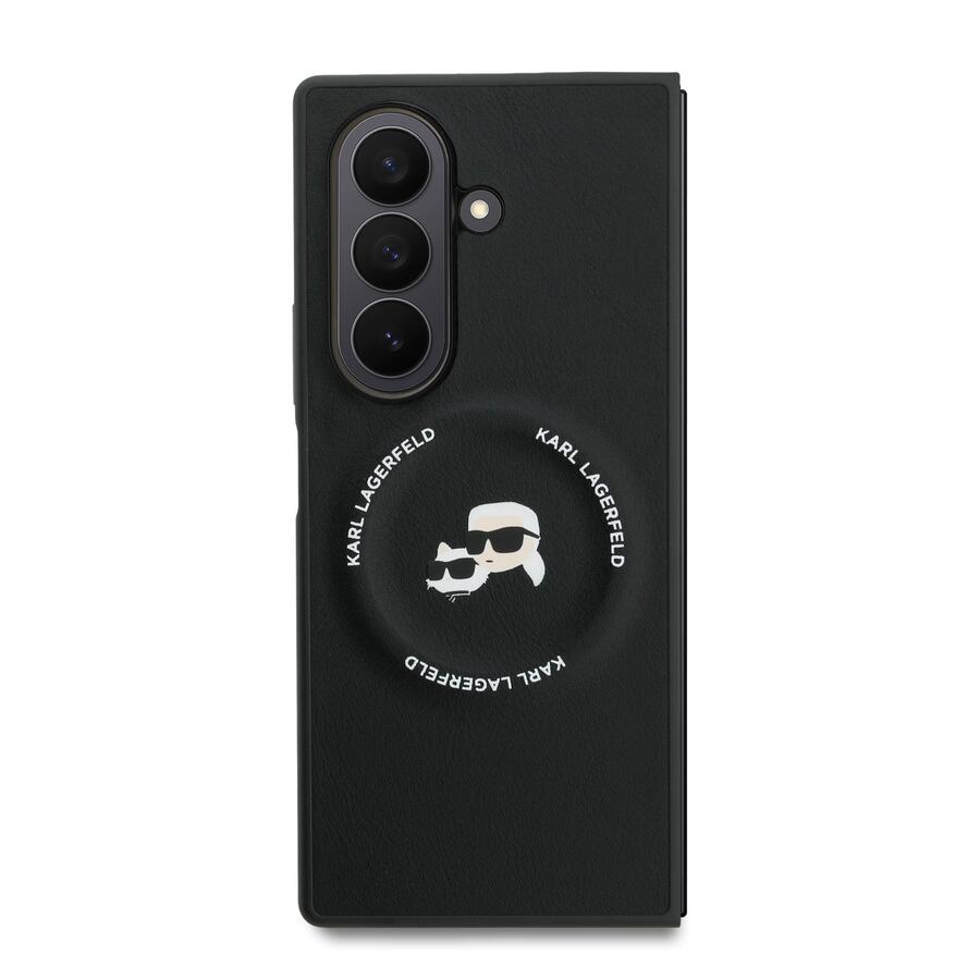 Karl Lagerfeld PU Karl and Choupette Heads Magnetic Case Magnētiskais aizsargapvalks priekš Samsung Galaxy Z Fold 7 / melns