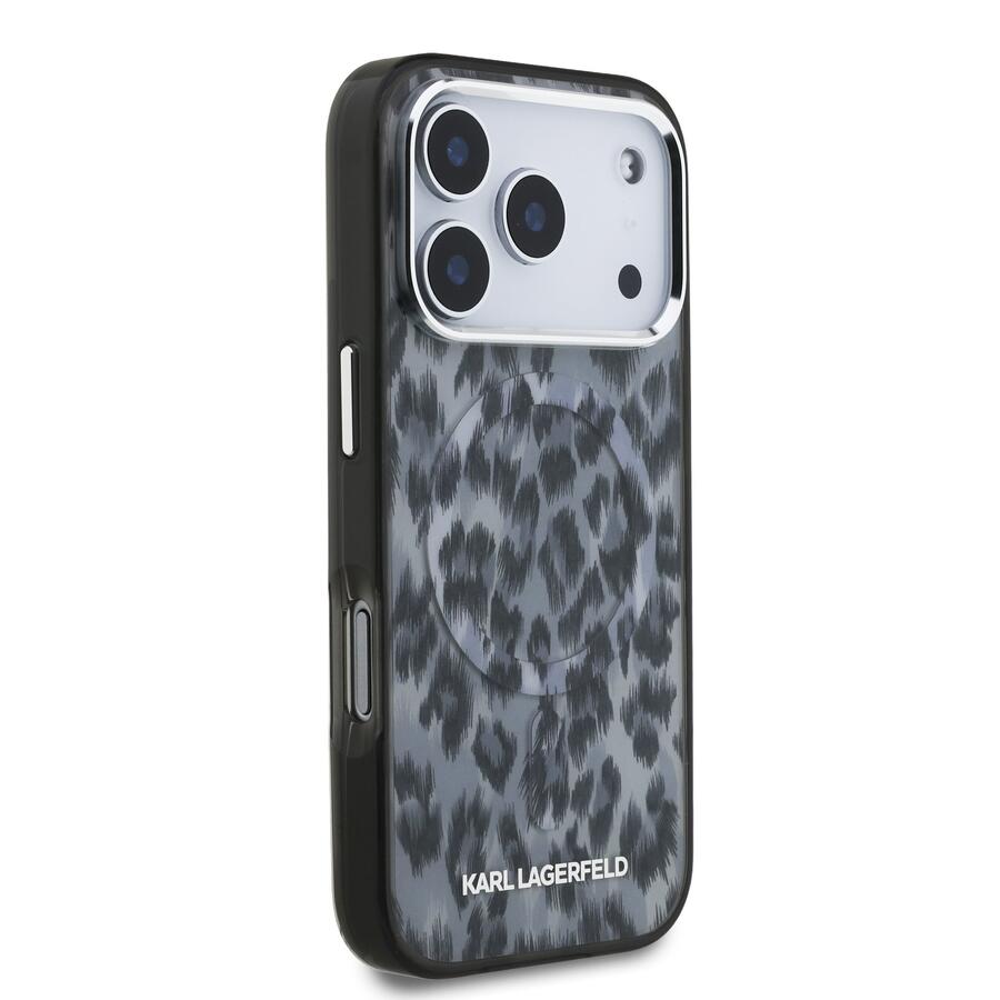 Karl Lagerfeld IML Leopard MagSafe Case Aizsargapvalks priekš iPhone 17 Pro / pelēks