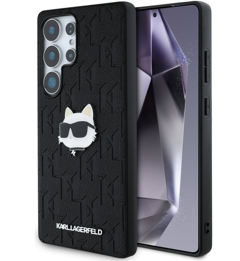 Karl Lagerfeld Leather Monogram Pin Logo Choupette Head Aizsargapvalks Priekš Samsung Galaxy S25 Ultra