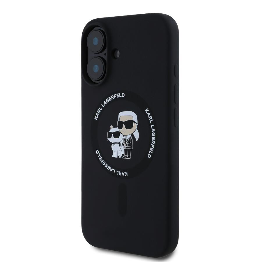 Karl Lagerfeld Liquid Silicone Karl and Choupette MagSafe Case Aizsargapvalks priekš iPhone 16 Plus / melns