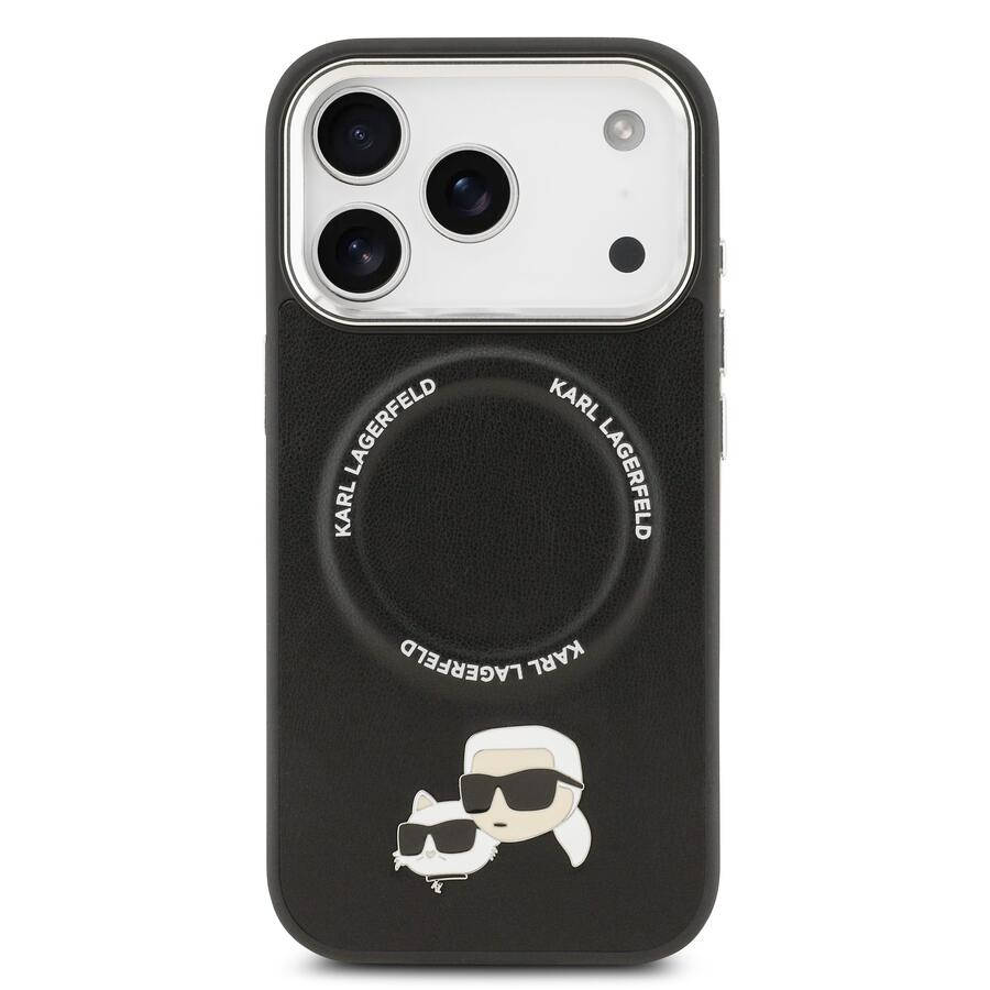 Karl Lagerfeld PU Karl and Choupette Heads Pins MagSafe Aizsargapvalks priekš iPhone 17 Pro / melns