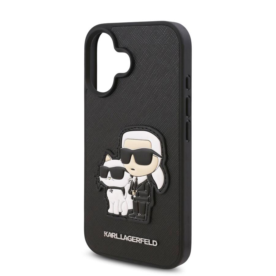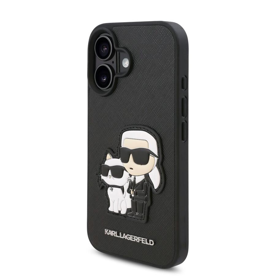 Karl Lagerfeld PU Saffiano Karl and Choupette Aizsargapvalks priekš iPhone 16 Plus / melns