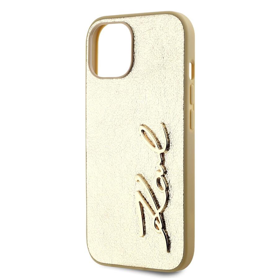 Karl Lagerfeld Wrinkled PU Signature Logo Case Aizsargapvalks priekš iPhone 15 / zelts
