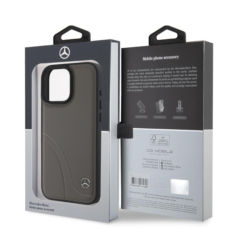 Mercedes Curved Stitches Leather Case Aizsargapvalks priekš Apple iPhone 16 Pro