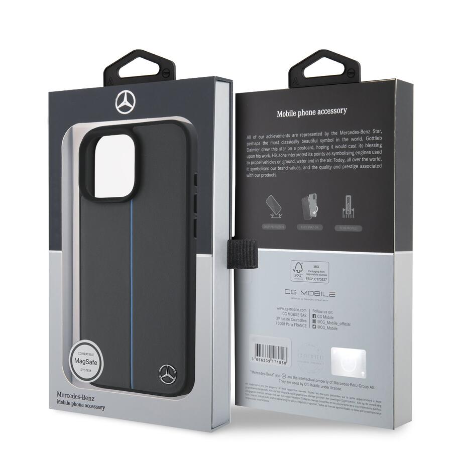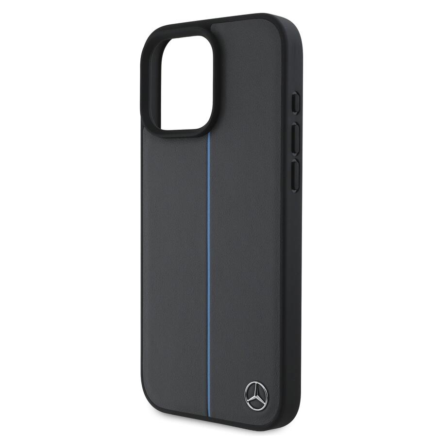Mercedes Leather Blue Stripe MagSafe Case Aizsargapvalks priekš Apple iPhone 16 Pro