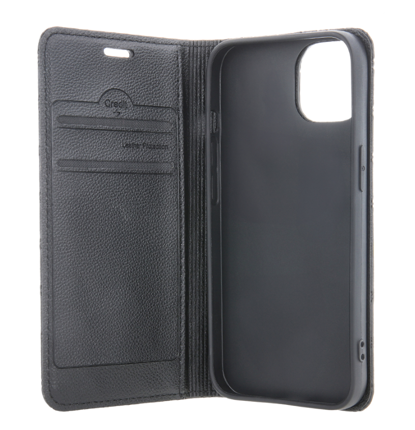 Apakšējā labajā stūrī atrodas spīdīga melna apaļa poga, kas piešķir maciņam gan eleganci, gan funkcionalitāti. Šis stilīgais un funkcionālais maciņš nodrošina ideālu aizsardzību jūsu viedtālrunim, piešķirot tam unikālu raksturu.