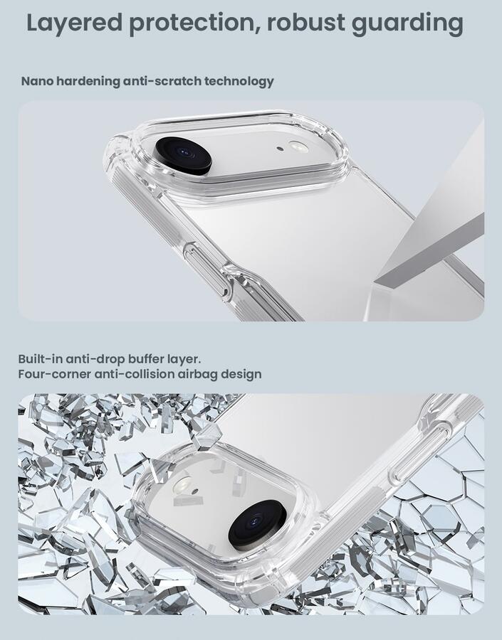Izturīgs un spēcīgs polikarbonāts (PC) aizmugurē, kas ir izturīgs pret skrāpējumiem un TPU elastīgs materiāls sānos.