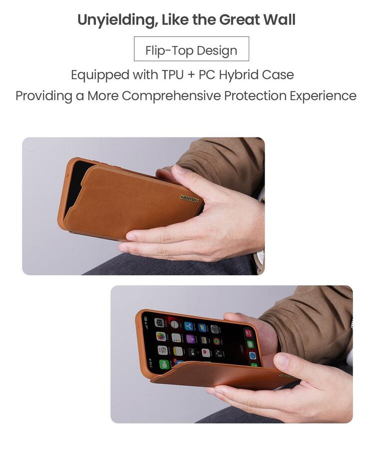 Nillkin QIN Book PRO maciņš ir izgatavots no augstas kvalitātes PU ādas, atveras uz sāniem kā grāmata, turklāt, salīdzinot ar klasisko QIN Book, ir aprīkots ar bīdāmu kameras objektīva vāciņu.