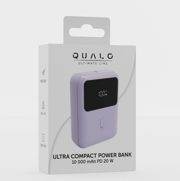 Qualo QPB10‑LD‑20‑09 Power Bank Arējas Uzlādes Baterija 10000mAh / LED / 20W / USB-A / USB-C