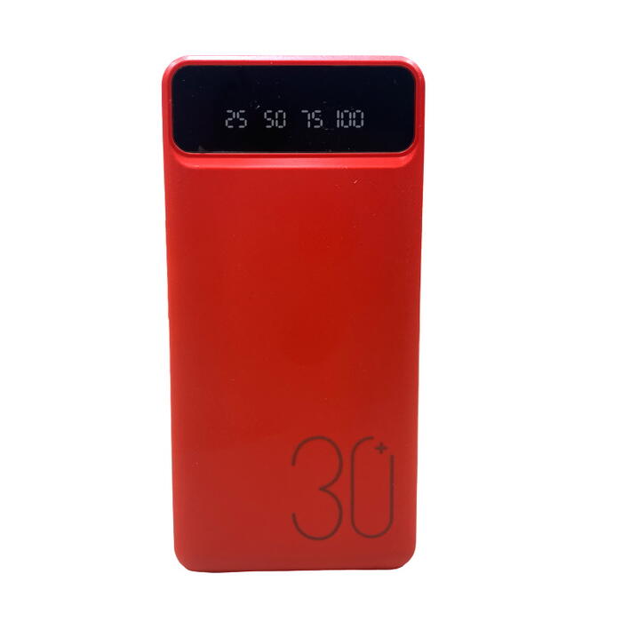 Riff YM-407S Mega 30000mAh Lādētājs 2x USB 2.1A Max Izejas / Micro USB + USB-C Ieejas + 3 Kabeļi Sarkana