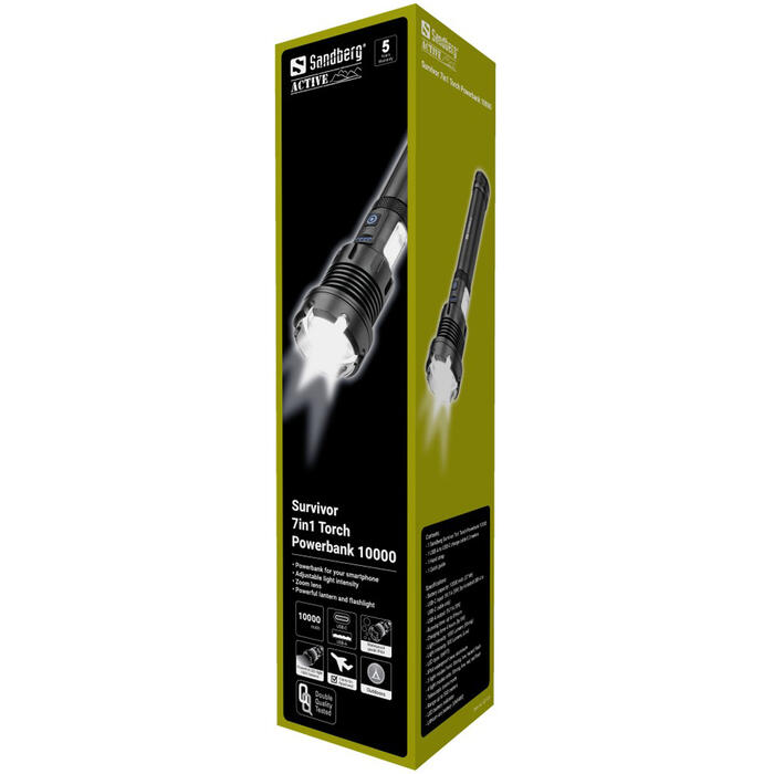 Sandberg 421-09 Survivor 7in1 Torch PB 10000, Flashlight powerbank 10000 mAh