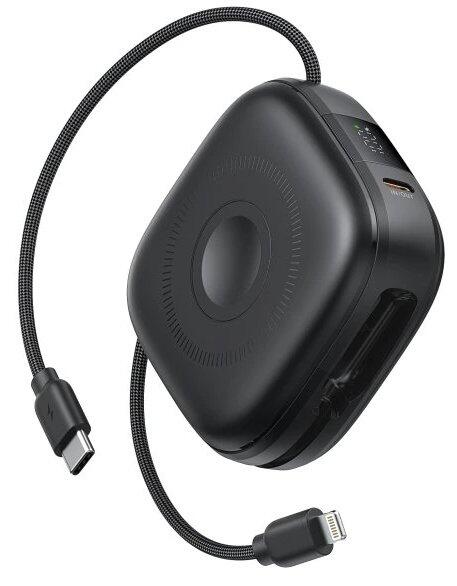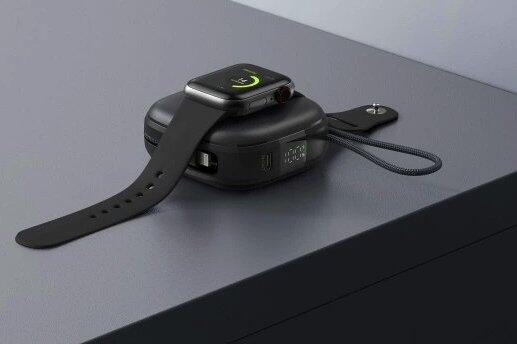 Apple Watch lietotājiem barošanas bankā ir iekļauts īpašs uzlādes paliktnis ar 2,5 W izvadi, kas ļauj uzlādēt pulksteni, neizmantojot oriģinālo uzlādes kabeli. Šis paliktnis ir paredzēts, lai droši noturētu Apple Watch savā vietā uzlādes laikā, nodrošinot stabilu un uzticamu savienojumu.