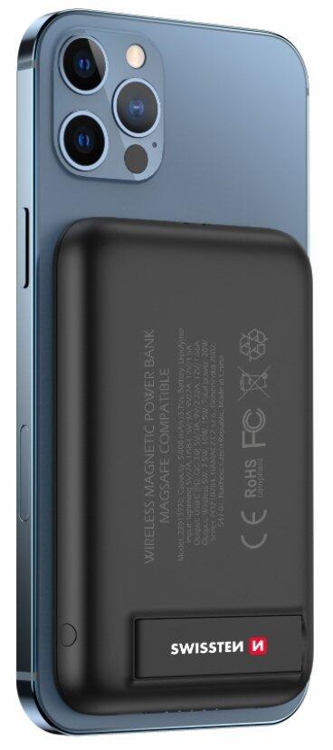 Swissten Power Banka MagSafe compatible Uzlādes baterija priekš Apple iPhone 12 / 13 / 14 / 15 sērijas 5000mAh