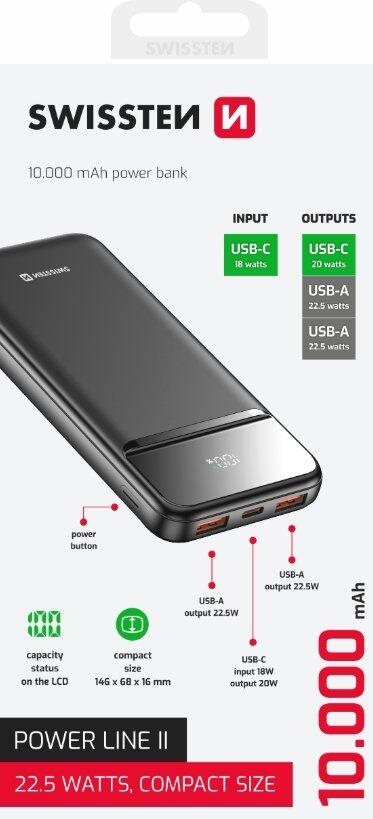Swissten Power Line II Power Bank Ārējas Uzlādes Baterija 10000 mAh