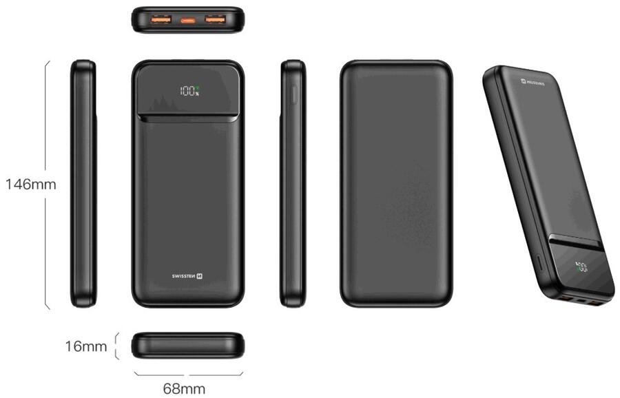 SWISSTEN jaudas banka ar jaudu 10 000 mAh neatstās jūs bez strāvas pat ceļā. Tā kompaktais dizains un LED displejs vienkāršai akumulatora stāvokļa pārbaudei padara to par praktisku palīgu ikdienas lietošanai. Turklāt tas piedāvā plašu uzlādes iespēju klāstu, pateicoties vairākām izejām un ātrai uzlādei.